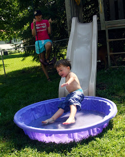 Looks like so much fun! I'm totally jealous. We don't have a swimming pool or a slide. Heck, we don't even have a yard.