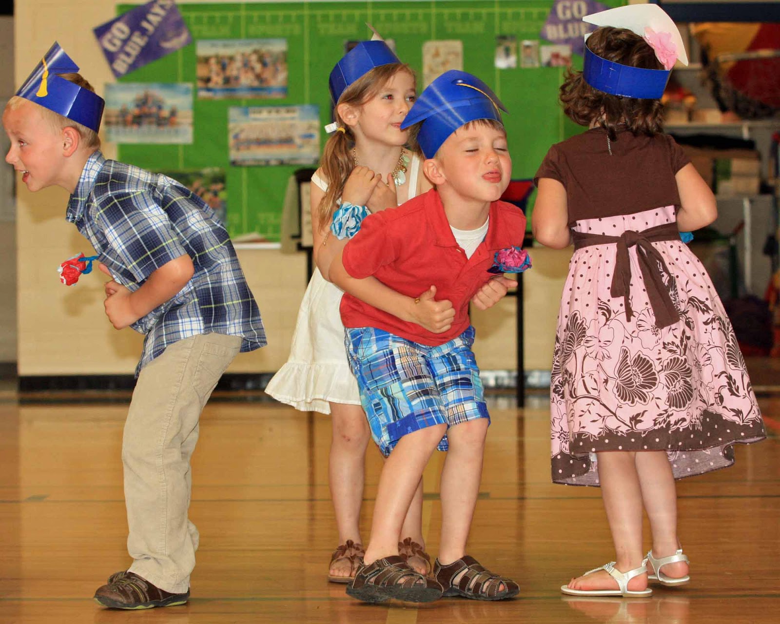 We had Jasper's preschool graduation today and were lucky enough to have Grandma Vicki, Aunt Melissa and Grandma Debbie and Grandpa Paul join us at Anderson Elementary. There were about 60 preschoolers included, 20 in Jasper's morning class with Miss Kelli. They said the Pledge of Allegiance, performed a couple of songs, a graduation poem and sang out the alphabet before receiving their pre-K diplomas. Jasper did a great job during the performances -- he's not shy at all -- and waited patiently as one of the last to get their diploma. He's made some great friends this year and is truly excited to go to kindergarten in the fall. As Natalie said, how many other kids want to make a countdown till the first day of school? We're thankful for Miss Kelli, Miss Kim and the rest of the staff at Anderson, including Mr. Mills, the principal, whose photo with Jasper is in another post.